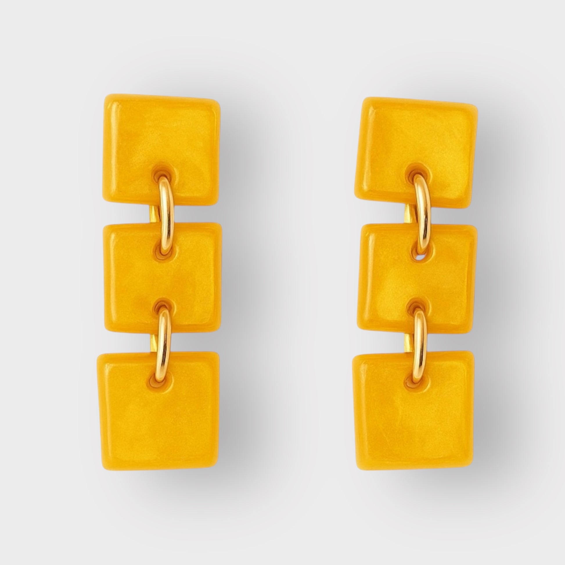 Pendientes realizados en resina y acero inoxidable.