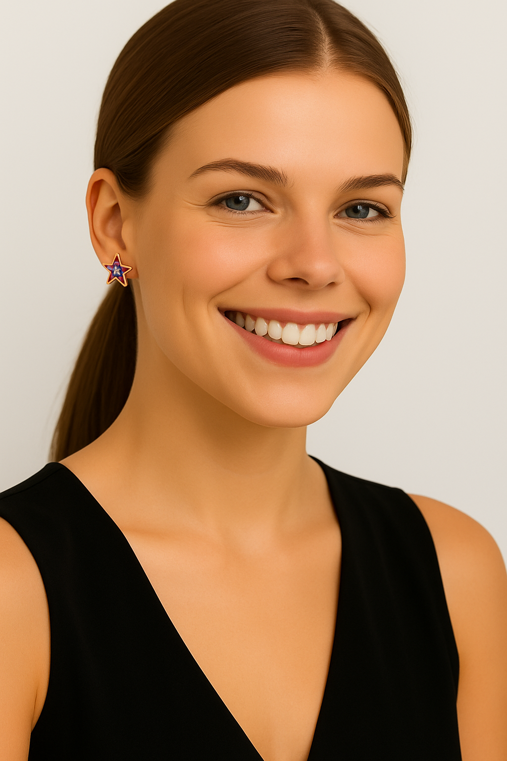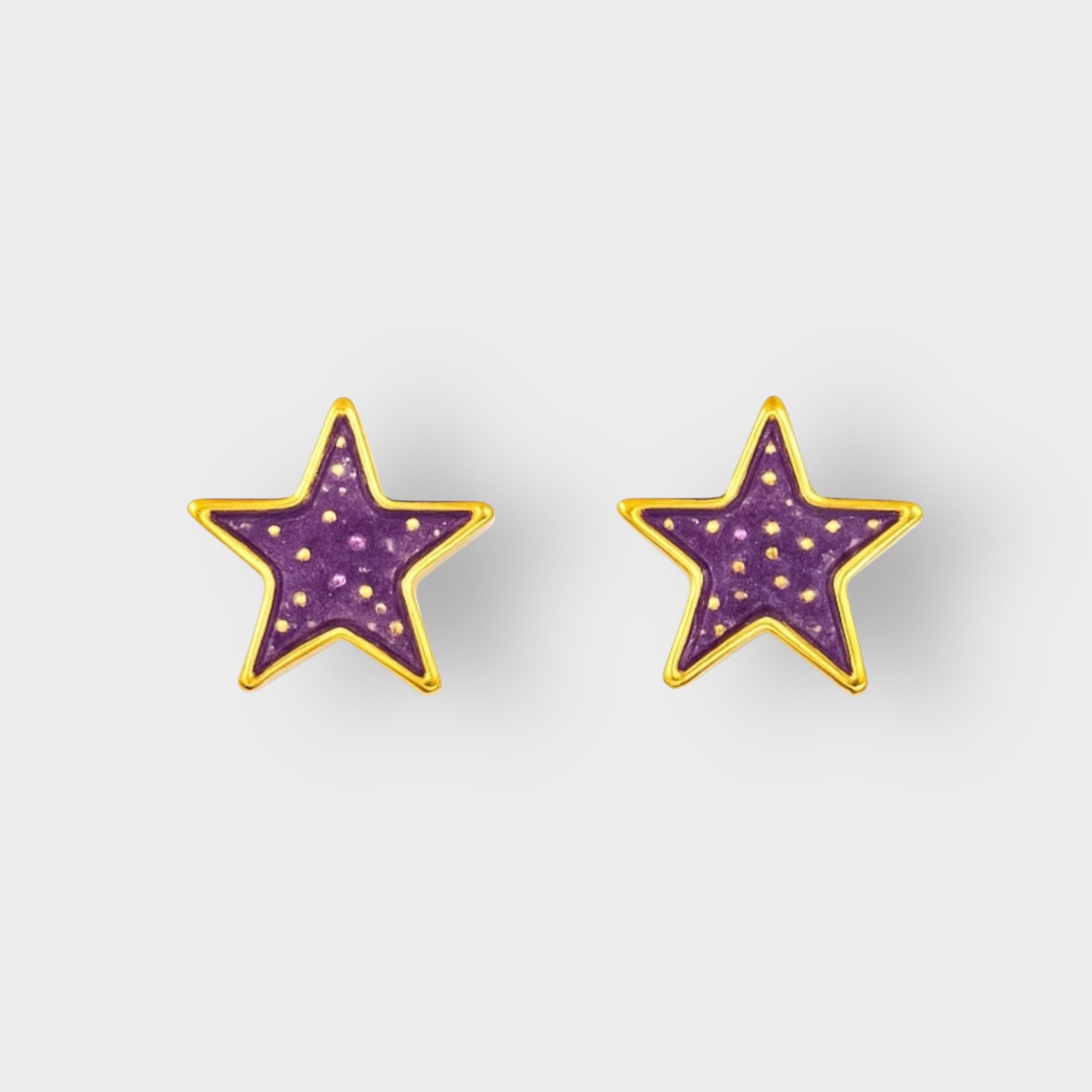 Pendientes con forma de estrella de acero inoxidable, arcilla polimérica, resina y pan de oro.