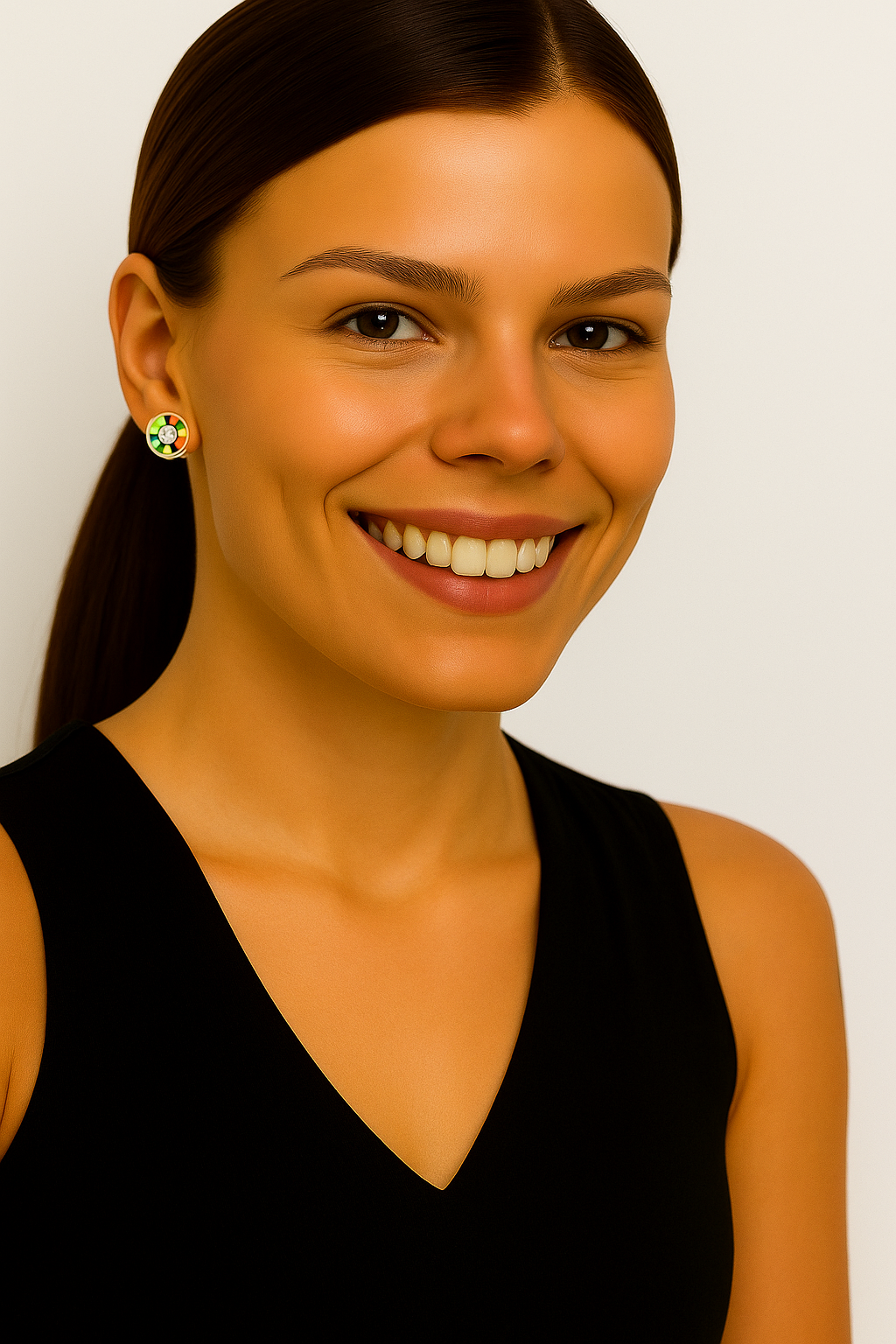 Pendientes con base de acero dorado hipoalergénico realizados en resina multicolor.