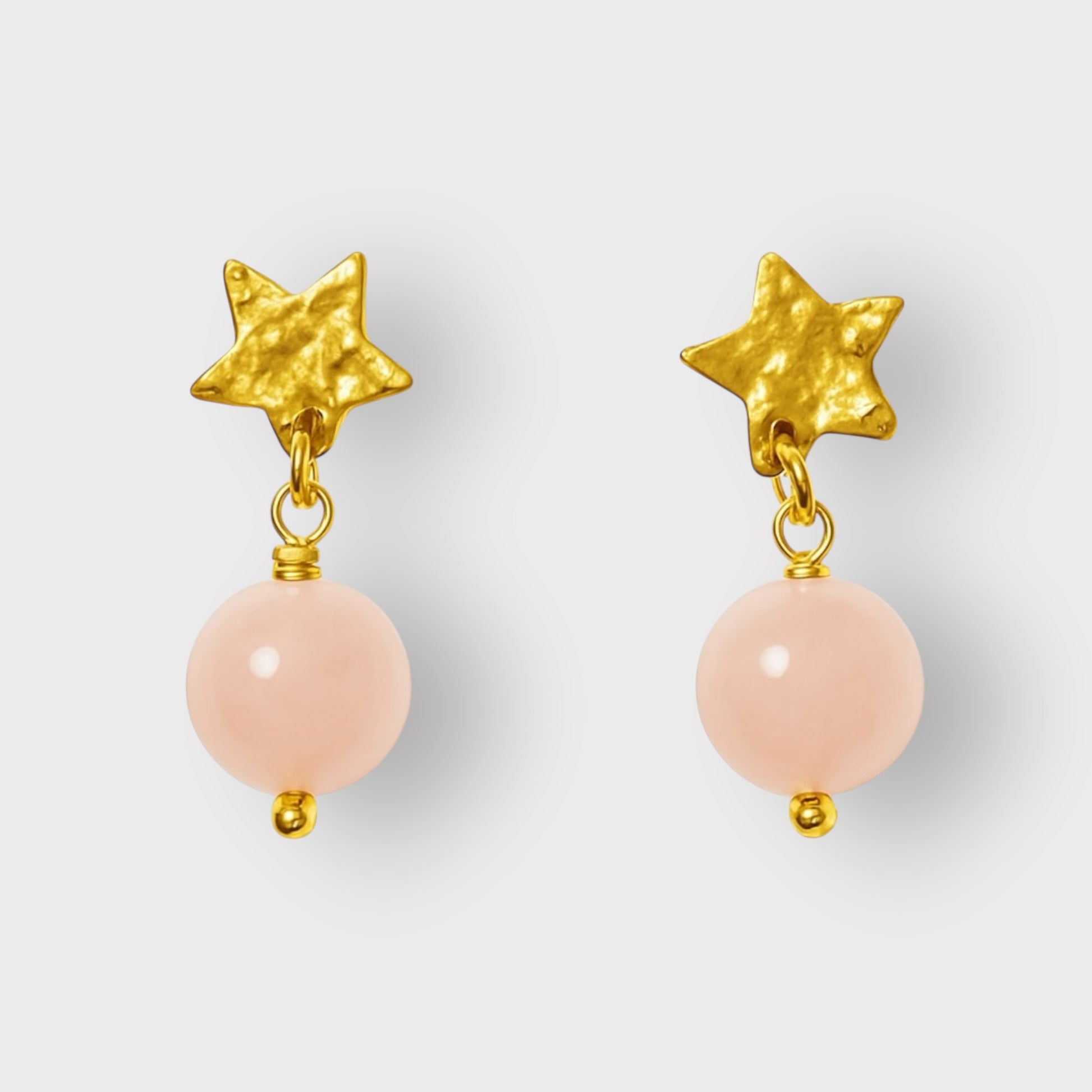 Colgante del pendiente en piedra rosa de Cuarzoq. Largo total 3 cm.