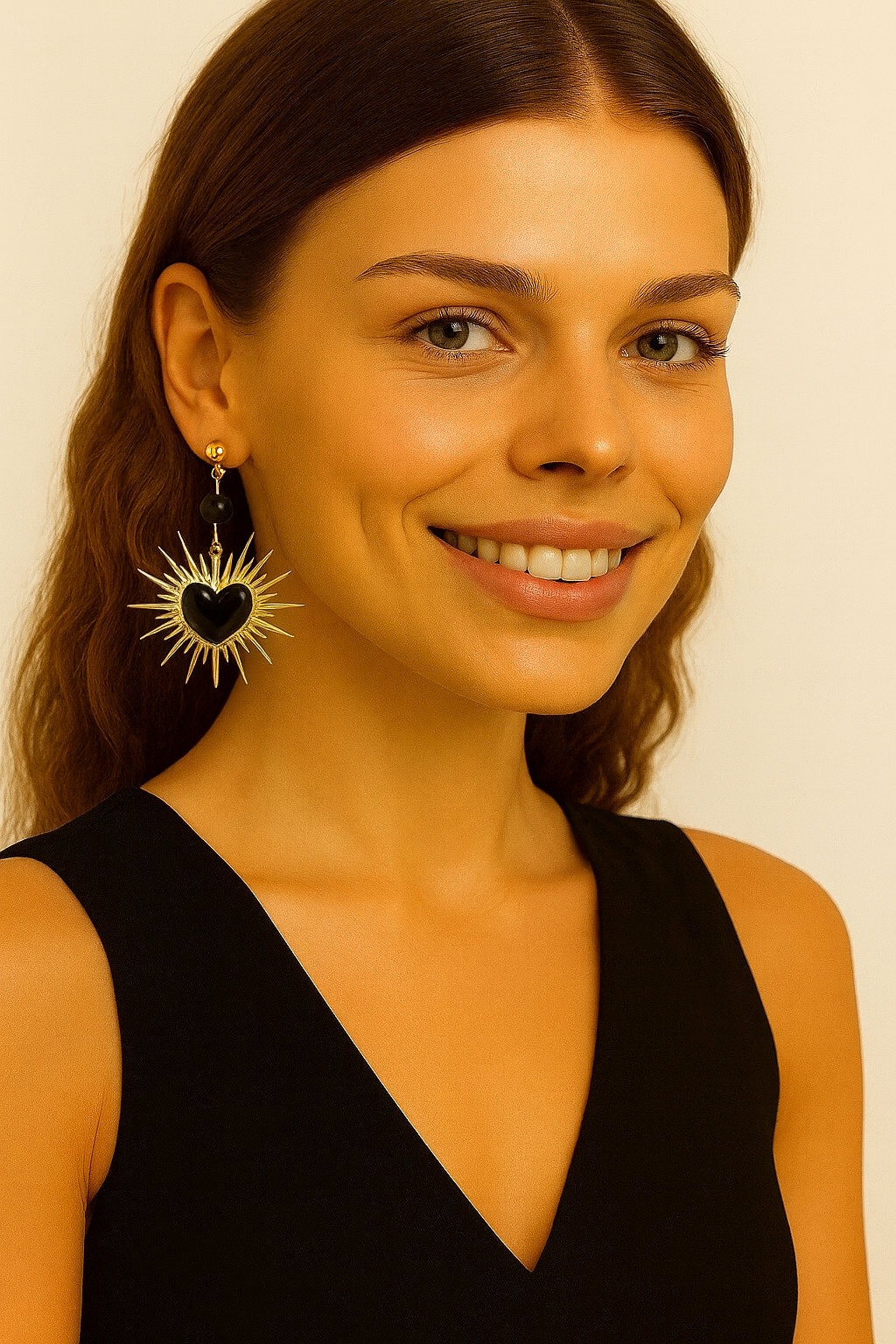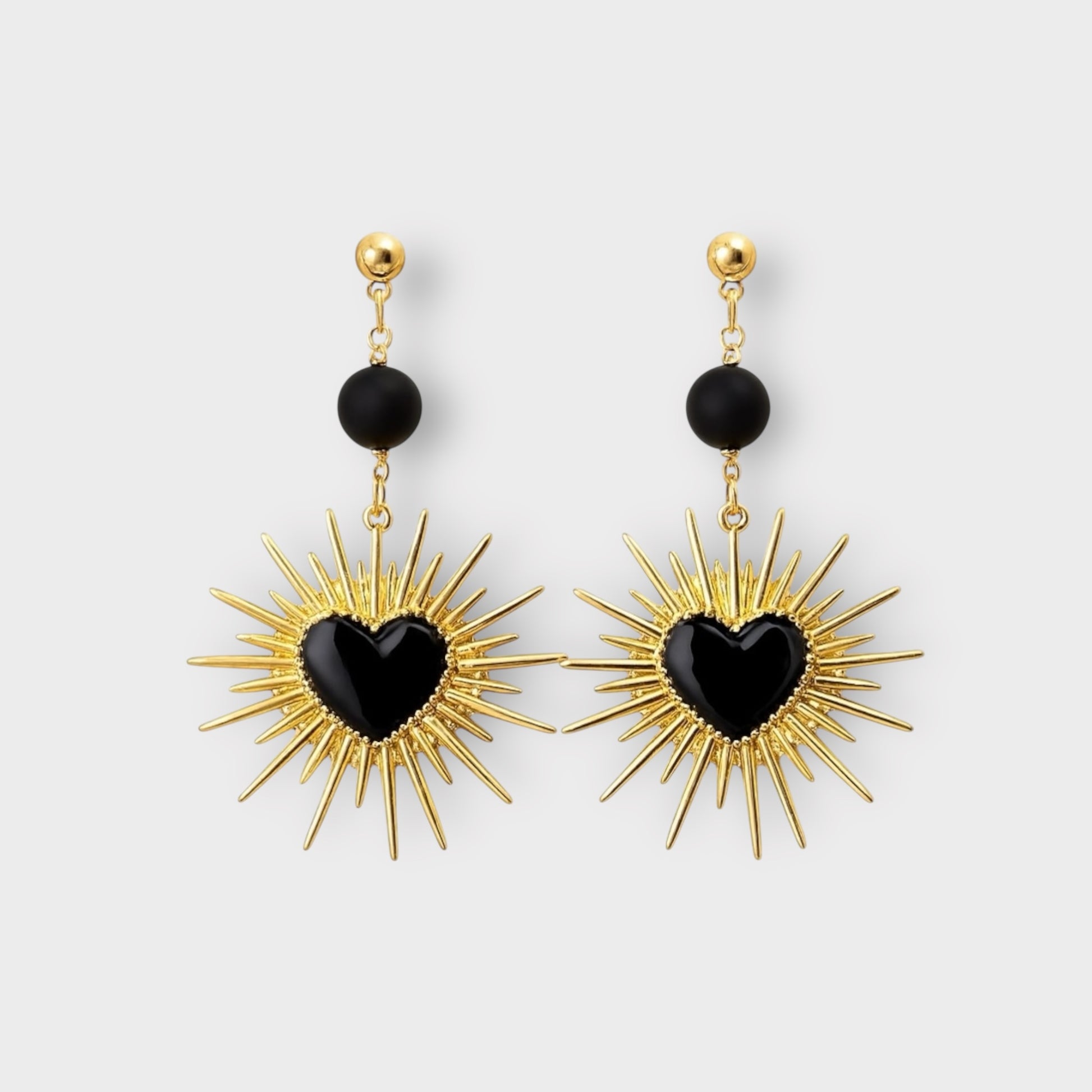 Pendiente con base de acero inoxidable y Colgante en aleación de Zinc con corazón de resina y abalorio de bola de piedra semipreciosa de Onice.