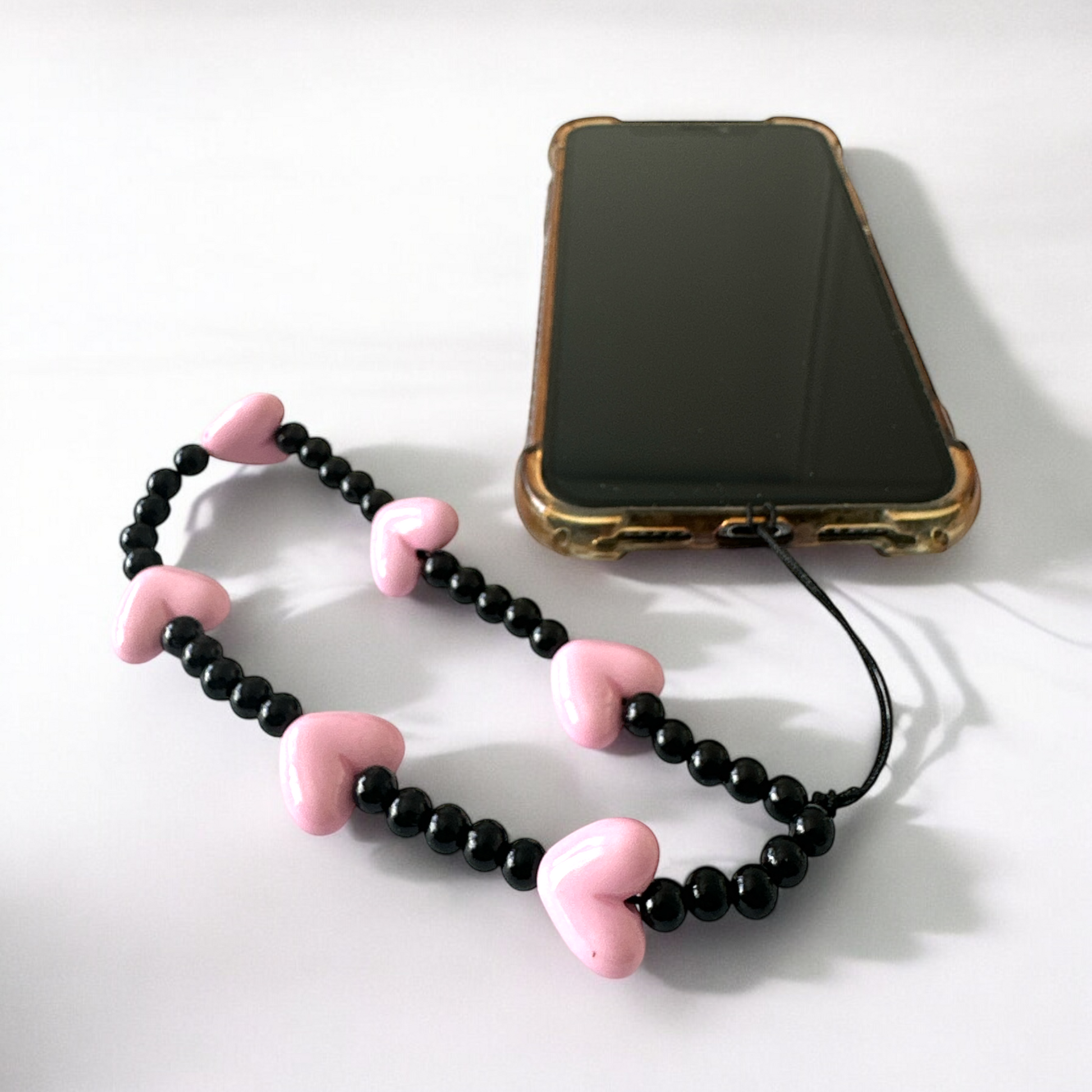 Correa ligera para funda de móvil hecha con abalorios de cristal y PVC.