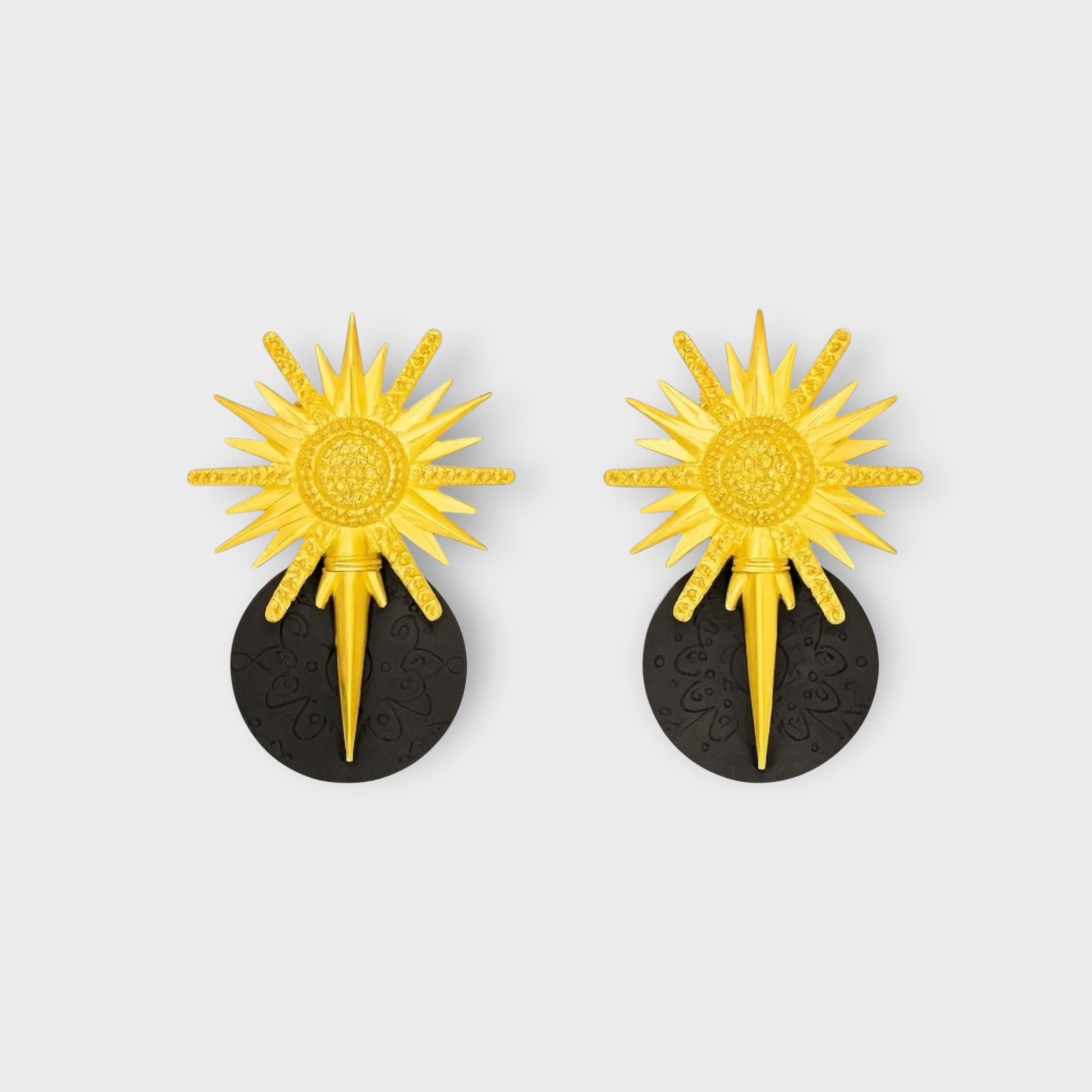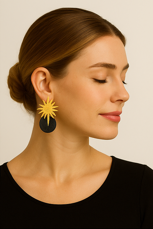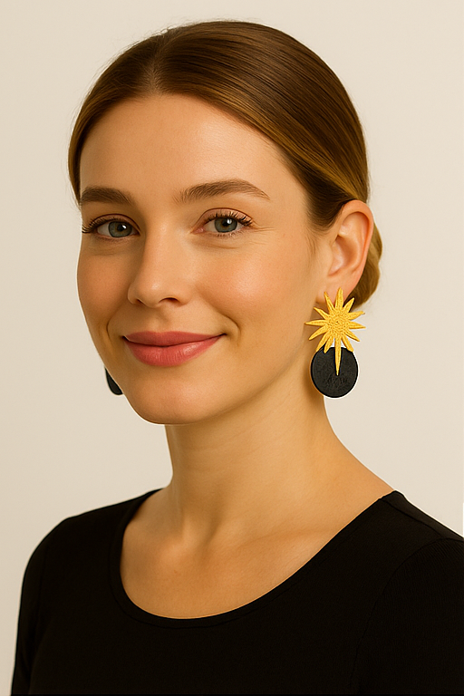 Pendiente hecho a mano con arcilla polimérica y enganche de estrella metálica de zamak chapada en oro mate.