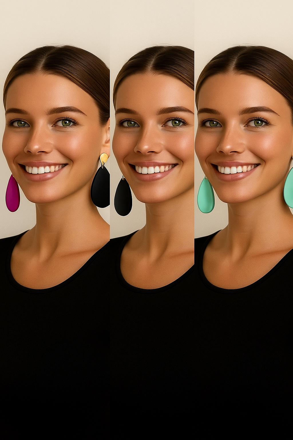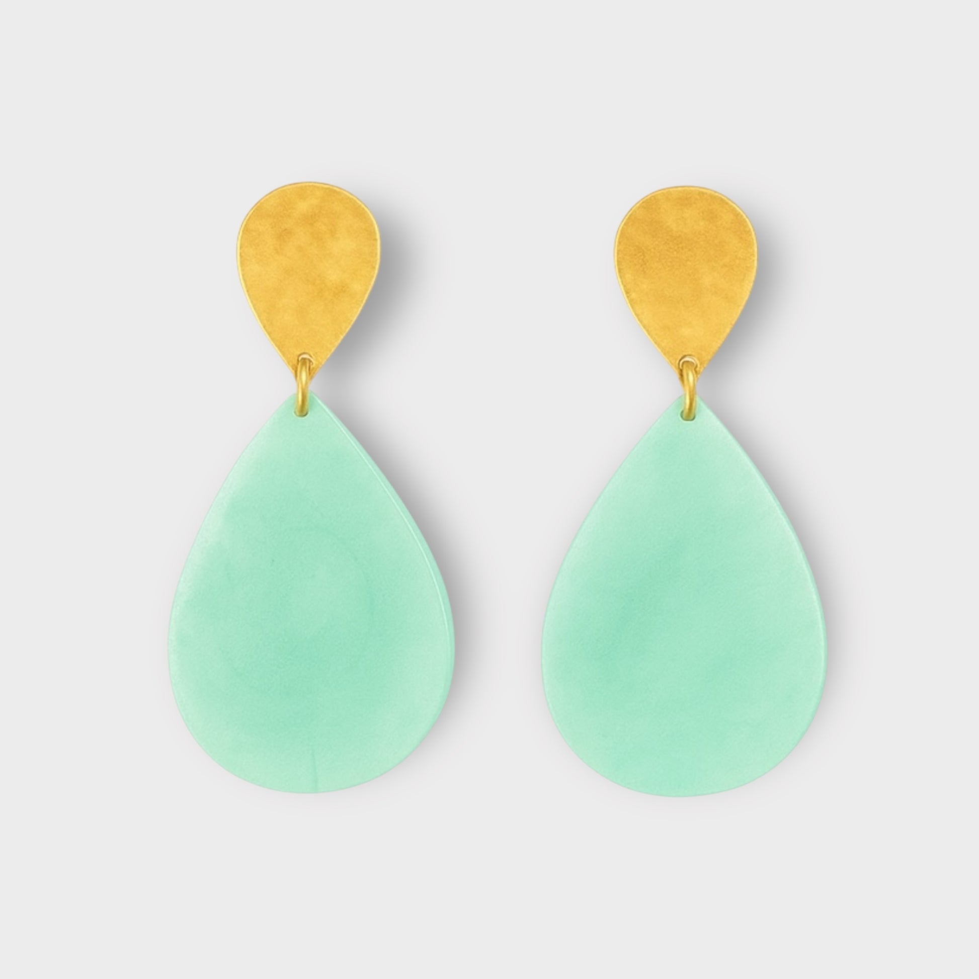 Pendiente hecho a mano en resina multicolor con cierres de acero inoxidable perfecto para cualquier look o para combinar en los grandes eventos