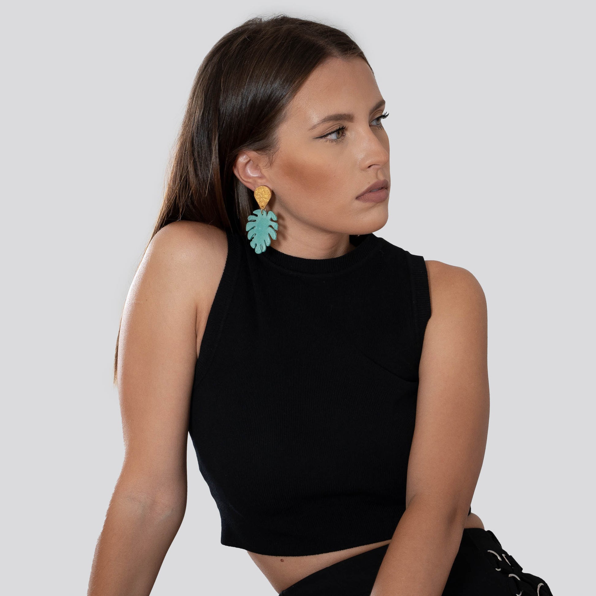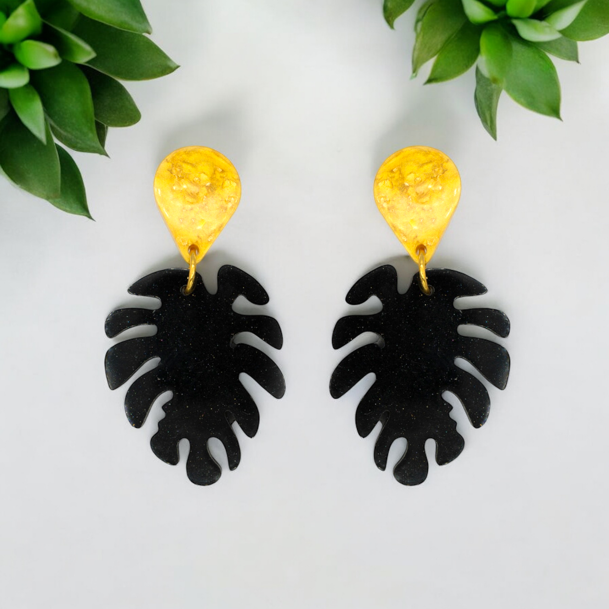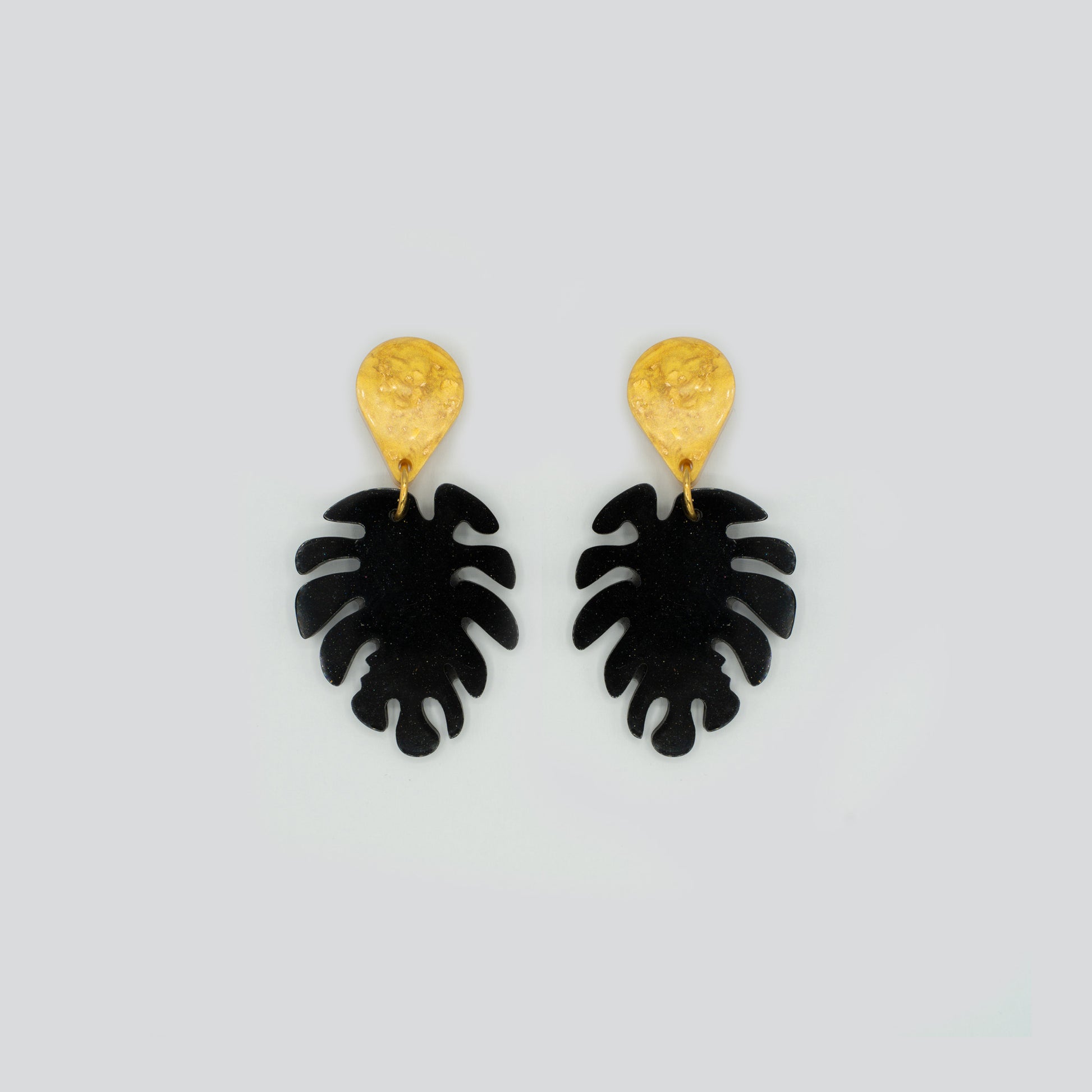 Pendientes hechos en resina con pigmento de mica y acero inoxidable hipoalergénico.