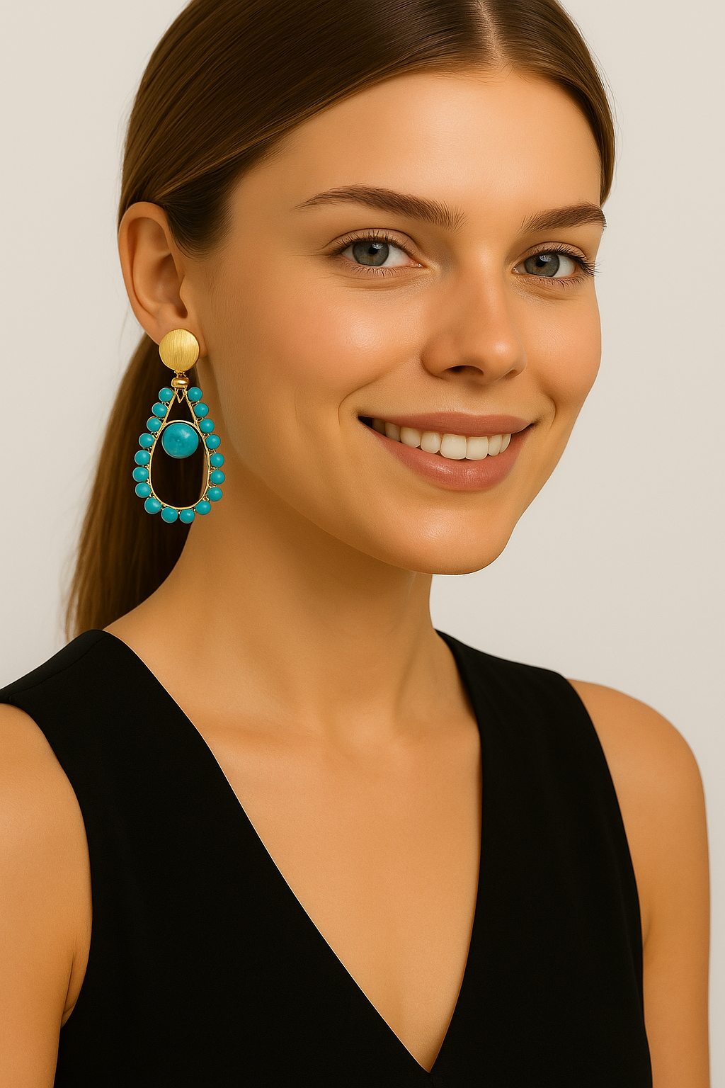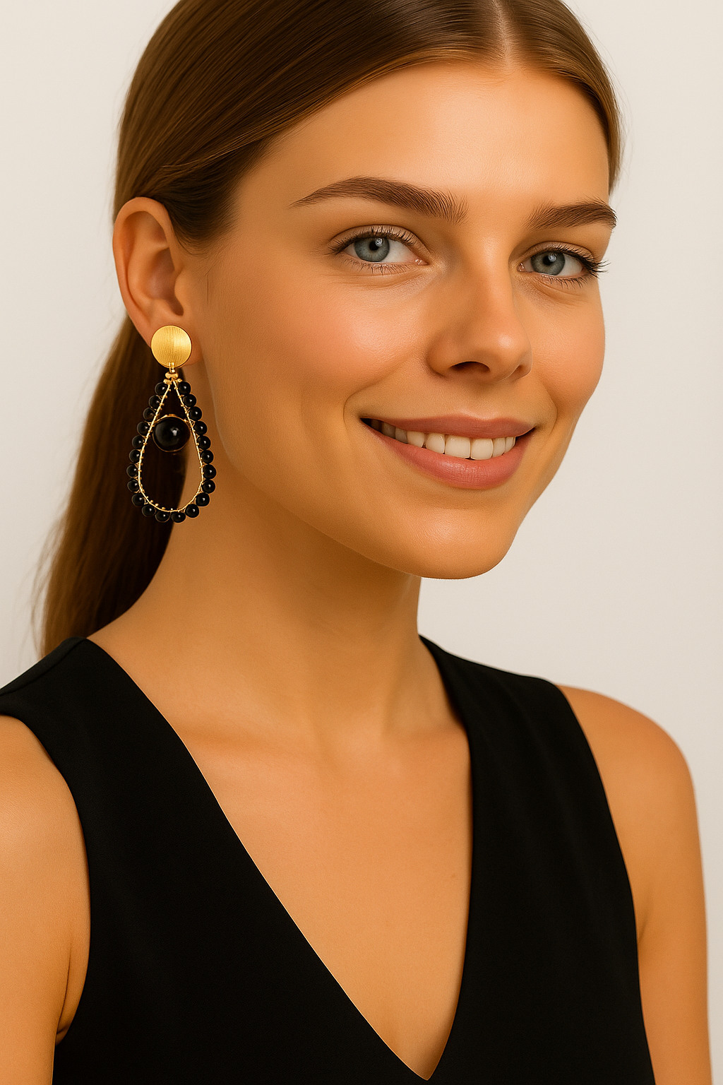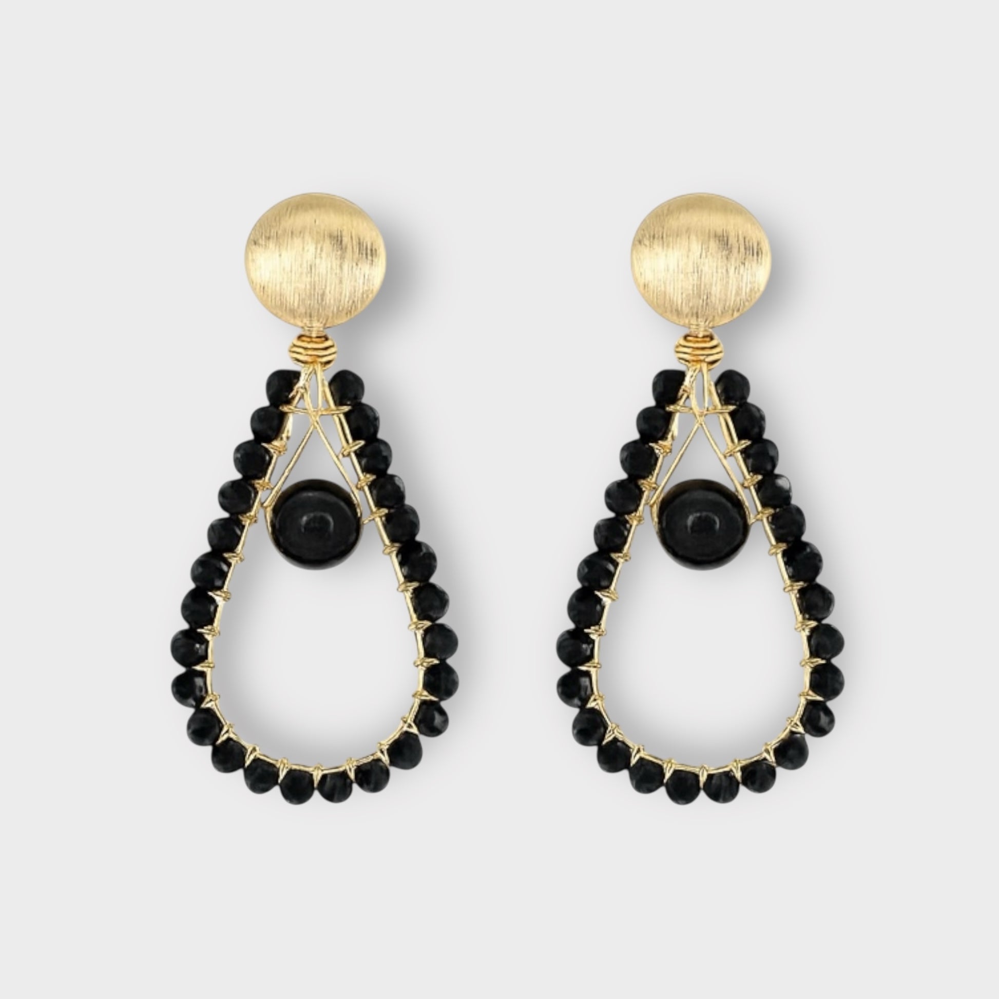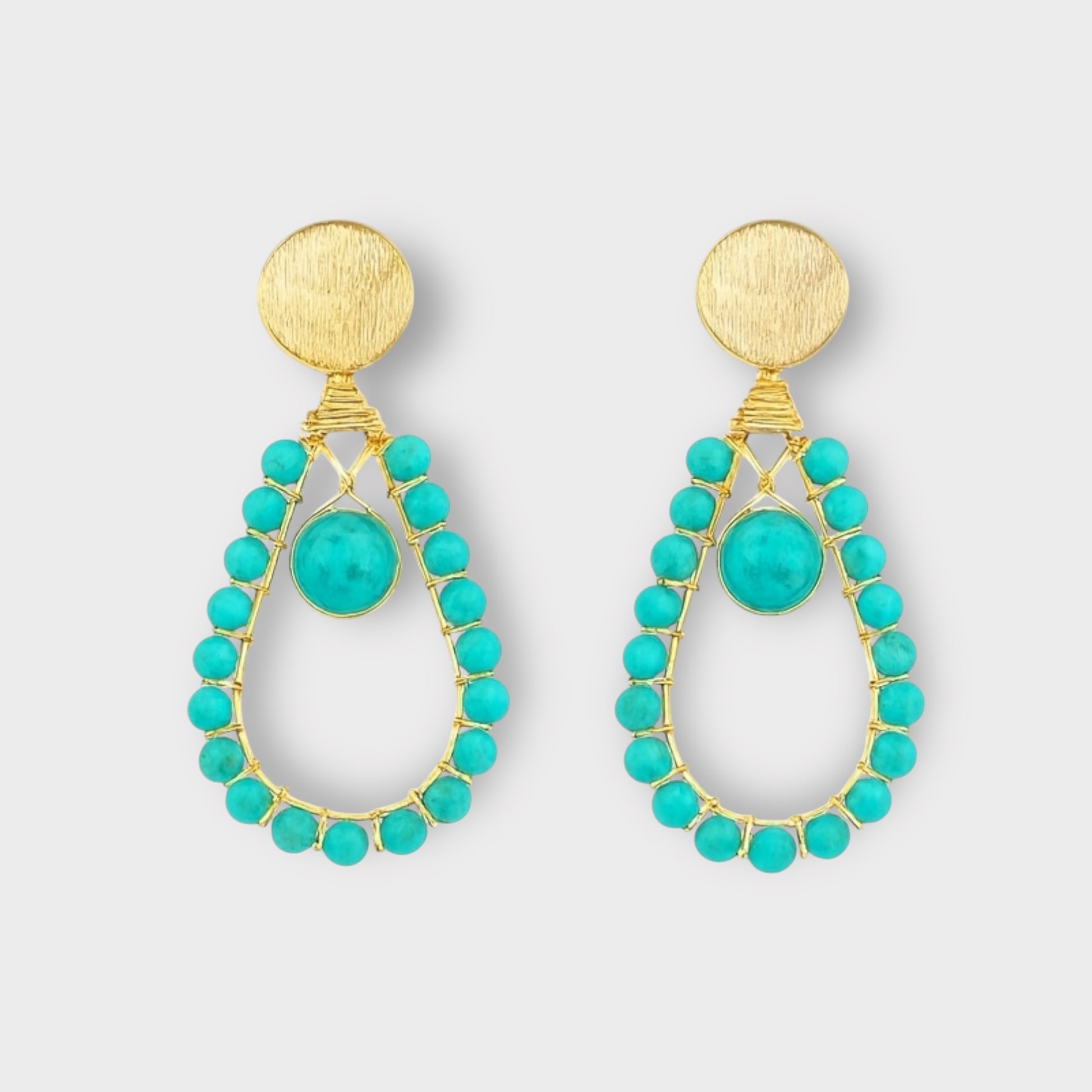 Pendientes hechos a mano con técnica de alambrismo, acero inoxidable y piedras semipreciosas.
