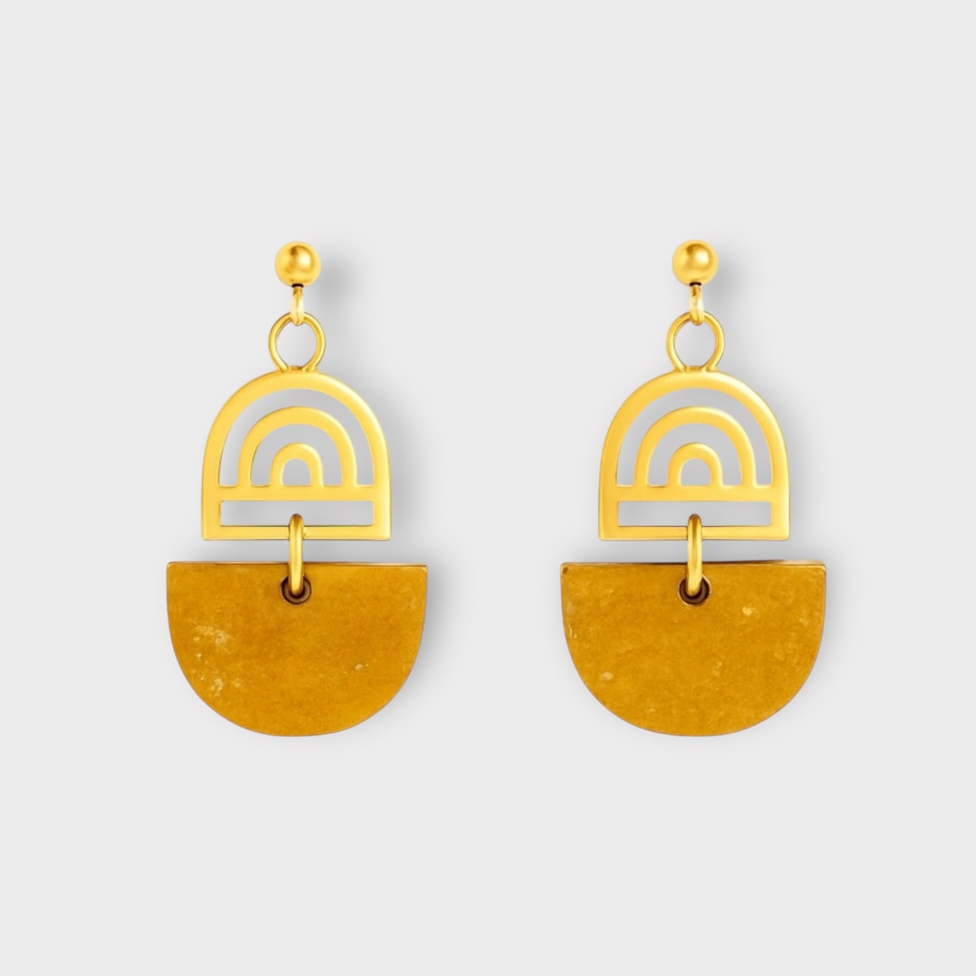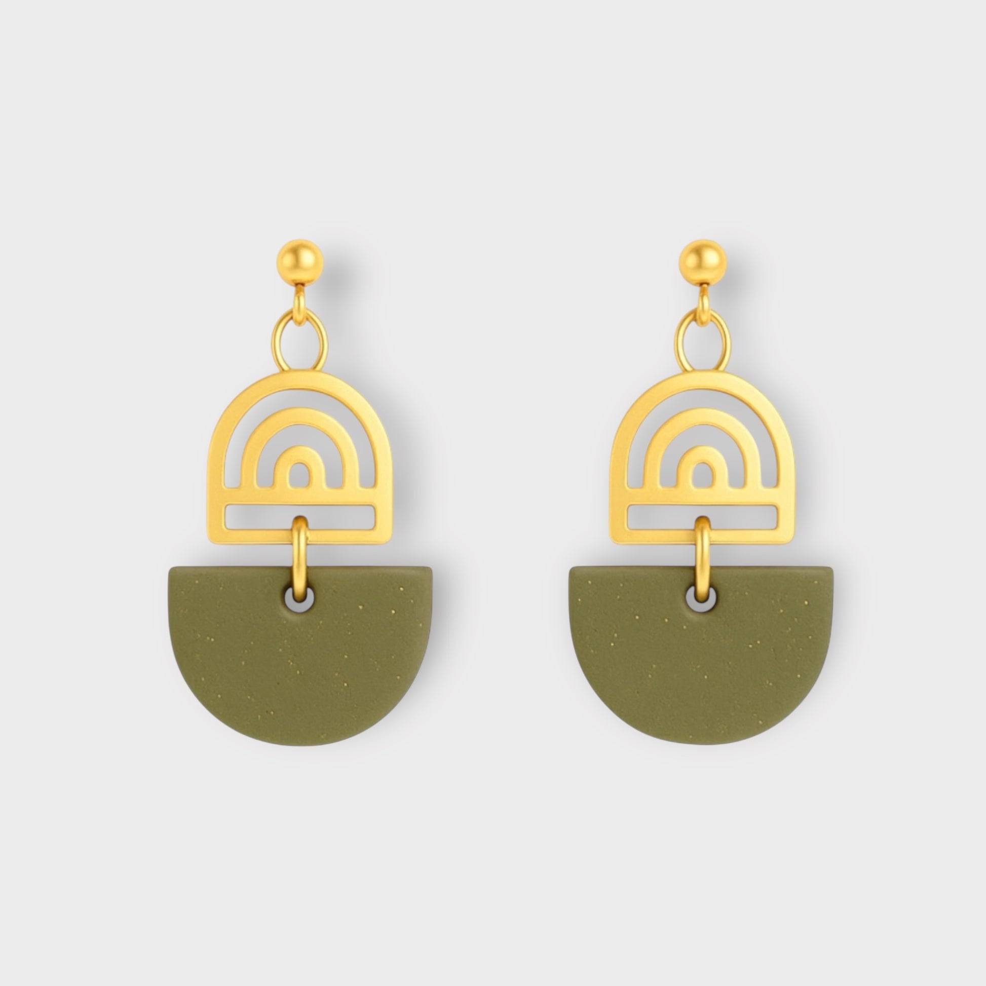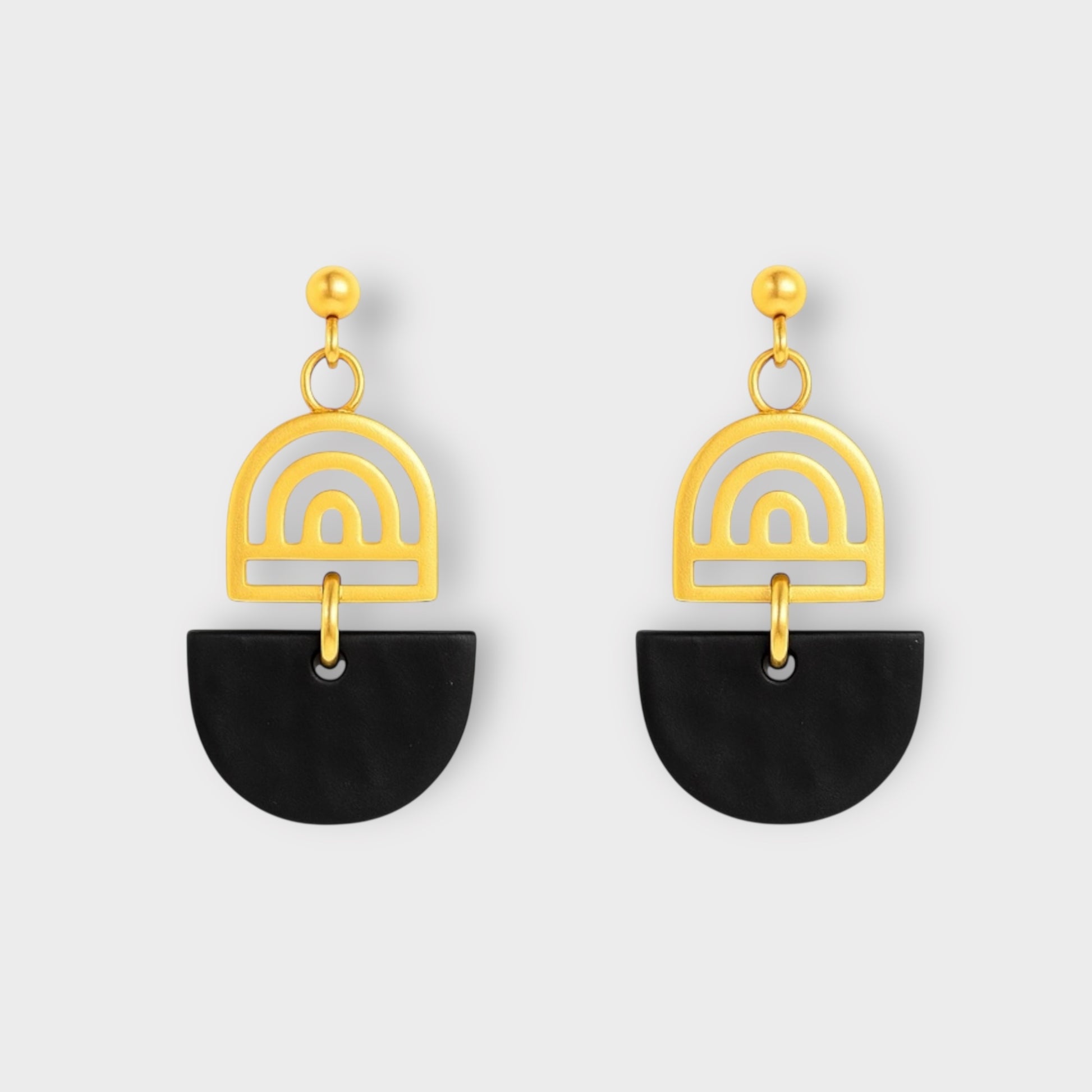 Pendientes realizados en acero inoxidable y arcilla polimérica con resina.